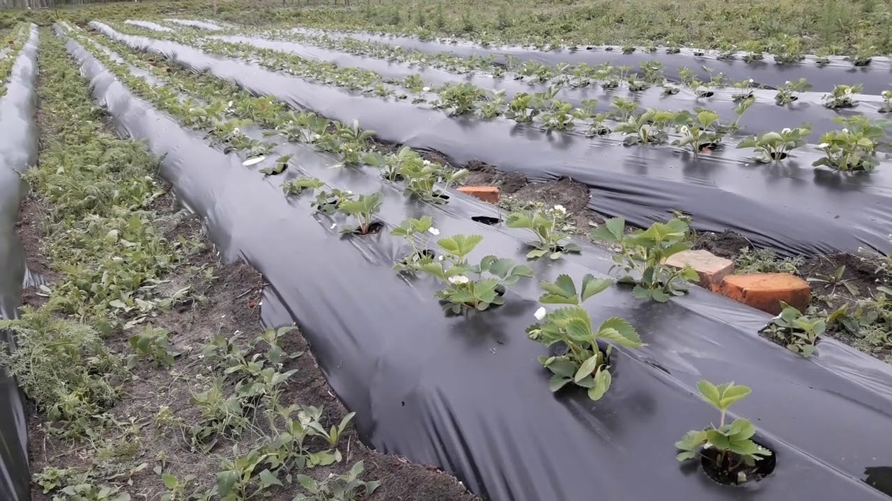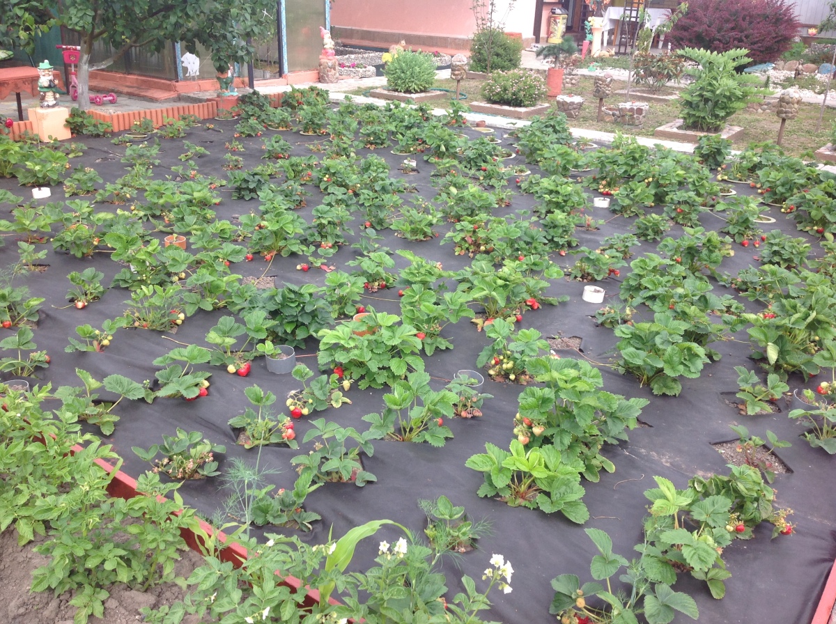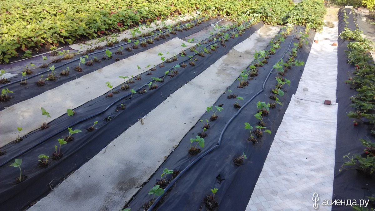 Они исключают появление сорняков, облегчают удаление усов и сбор урожая. Уход за такими посадками заключается в регулярном поливе и внесении удобрений. Клубника не терпит переувлажнения. Полив производят несколько раз в неделю. При дождливой и прохладной погоде полив сокращают. Удобряют клубнику при таком способе выращивания раствором специальных комплексных удобрений. При внесении гранулированных подкормок их равномерно рассыпают по всей грядке. В осенний период грядки для клубники заполнены сформированными за лето усами. Их удаляют и используют в качестве рассады для новых посадок.
