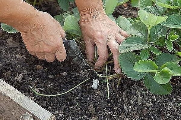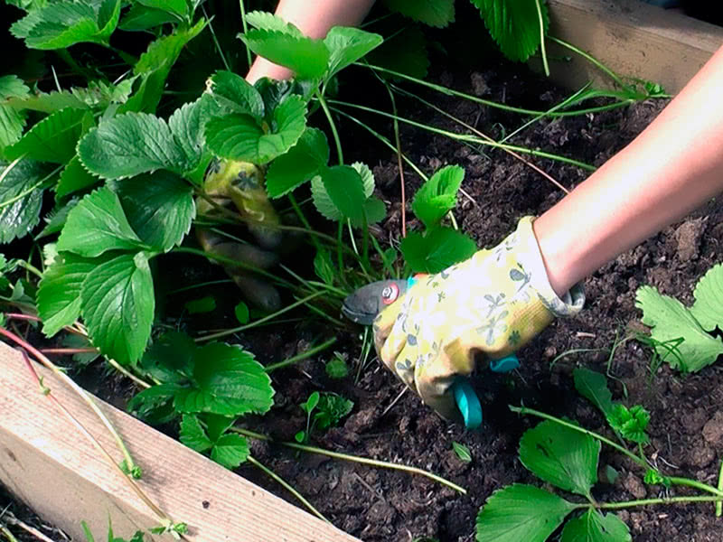 У каждого садовода свои секреты, как ухаживать за клубникой, но основные общие приемы агротехники следующие: обрезка: