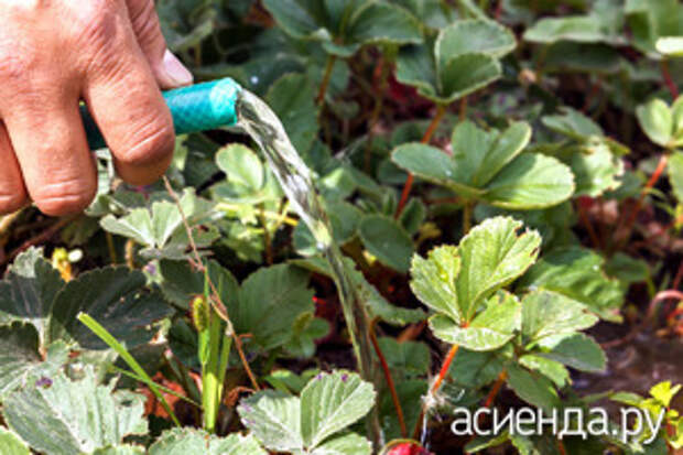 Также сухие минеральные удобрения можно растворить в воде (0,5 ст. л. на 1 л воды) и полить ими почву под кустами земляники, расходуя 2-3 л на 1 м² почвы.