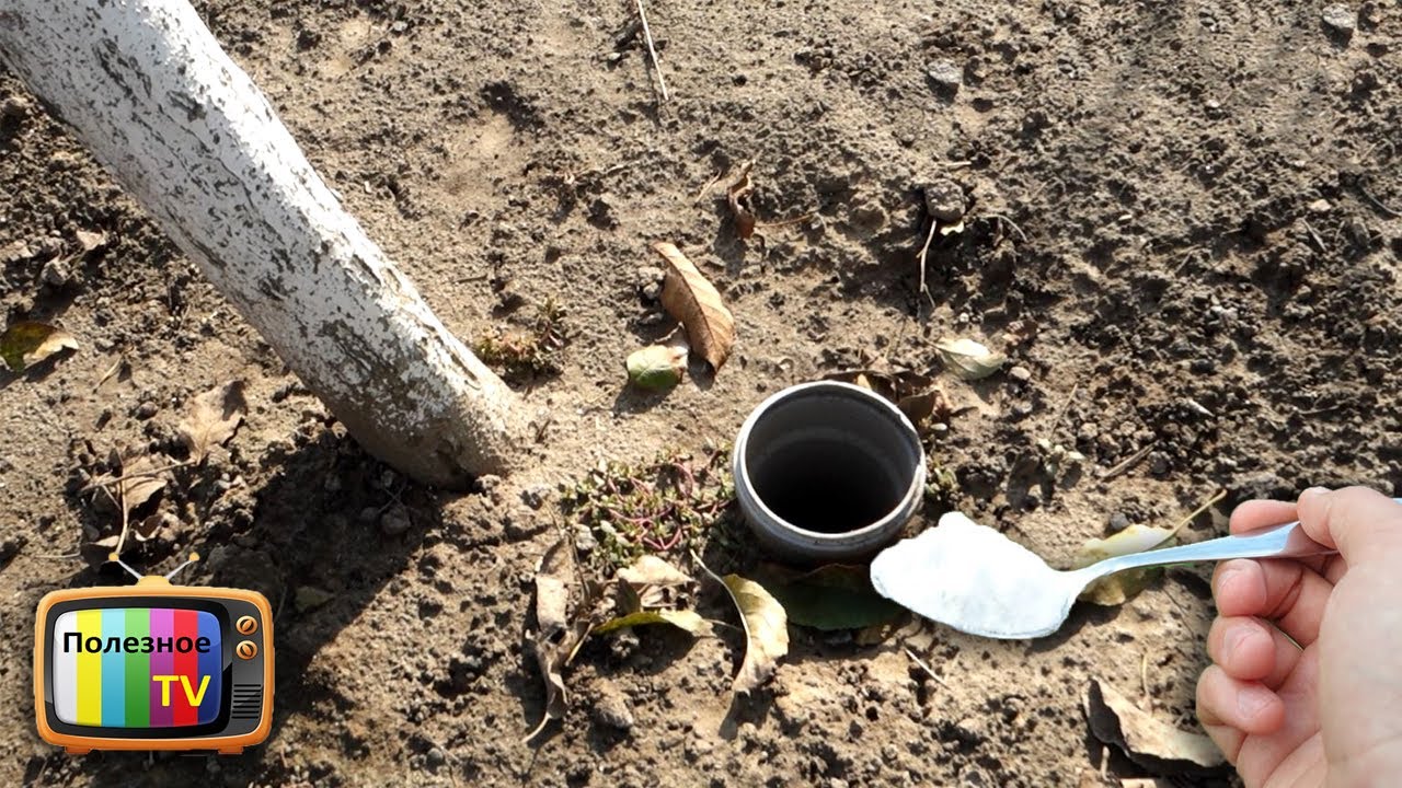 - Если дерево одно, то 150 грамм суперфосфата и 300 грамм сульфата калия и заливают пятью ведрами воды, и их вливают в выкопанный вокруг ствола ровик.