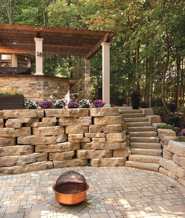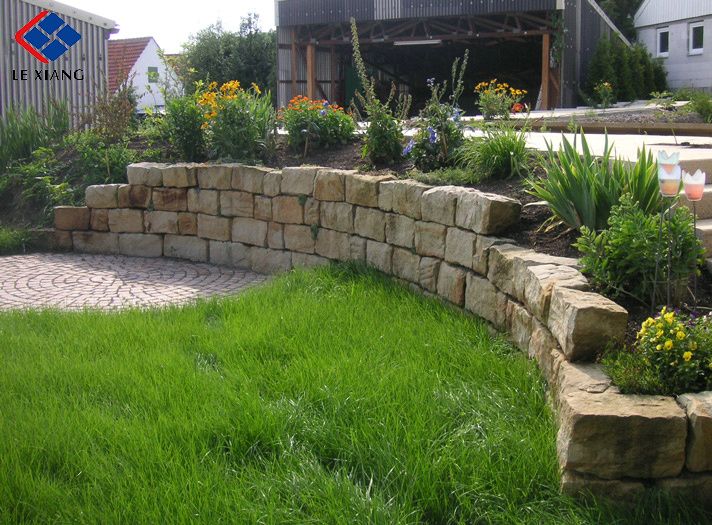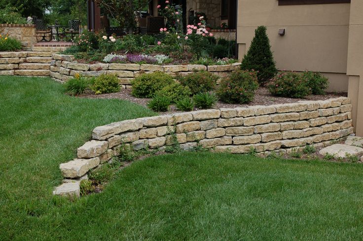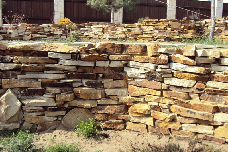 Сложенный песчаник отлично подходит для строительства низкоуровневой подпорной стены.