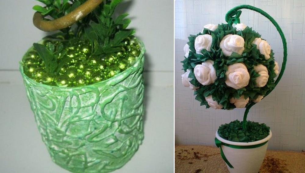 В качестве подставки для топиария подойдут самые разнообразные емкости.