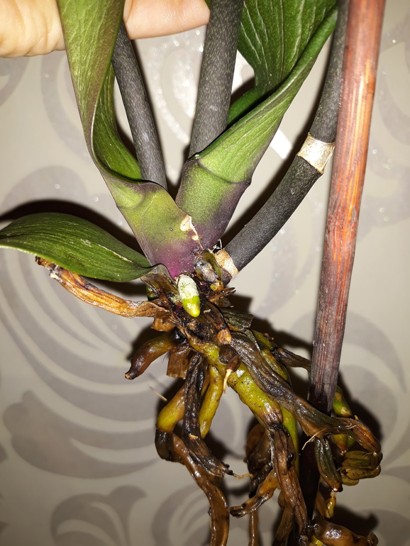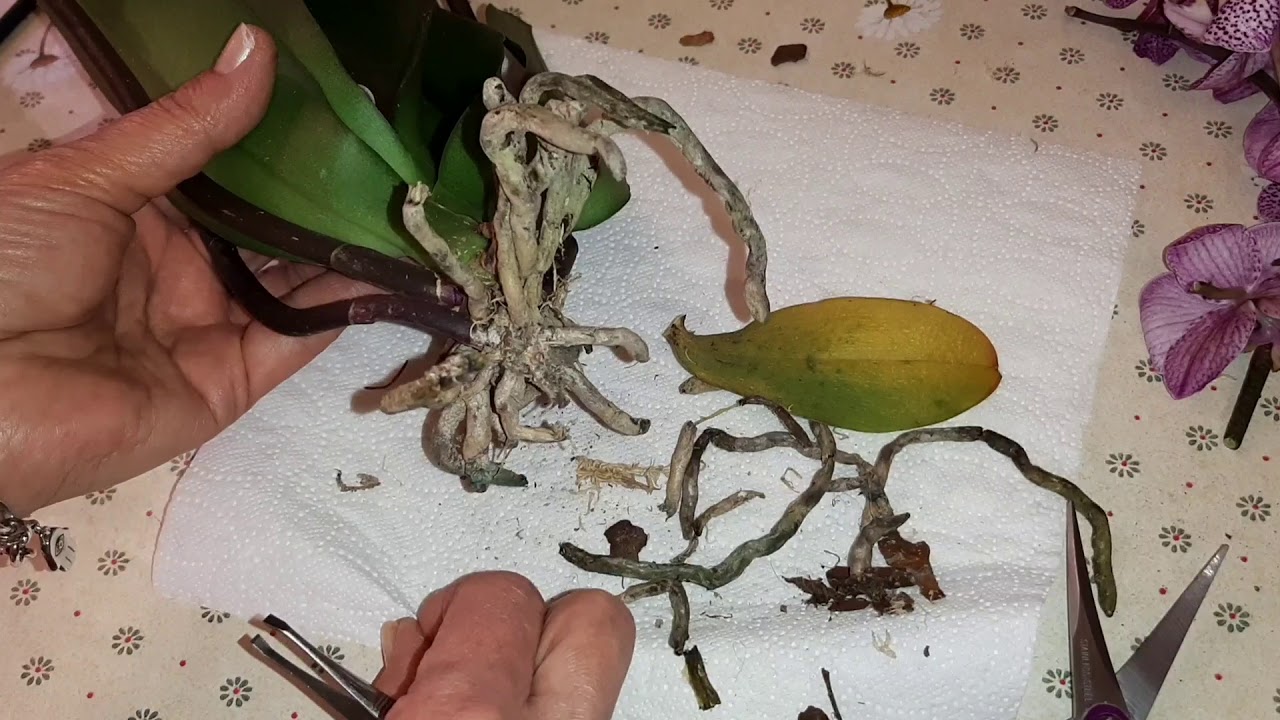 Большинство орхидей можно спасти, вынув растение из горшка и среды и отрезав гнилые корни (иногда даже большую часть стебля).