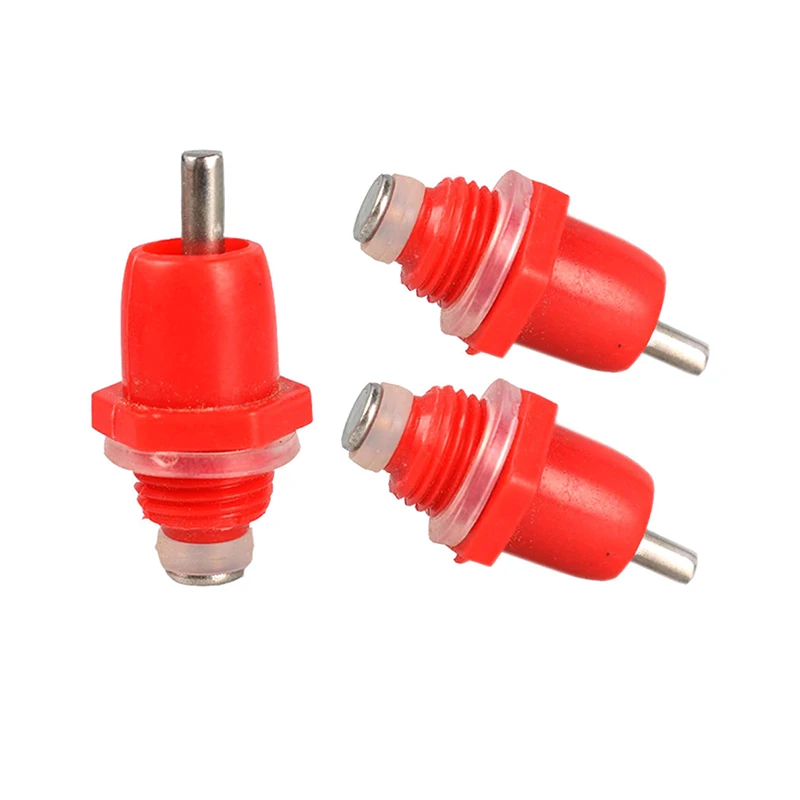 Это небольшие устройства, немного похожие на свечу зажигания. Они ввинчиваются в ведро или аналогичный держатель для воды. При клюве устройство выпускает на курицу несколько капель воды.
