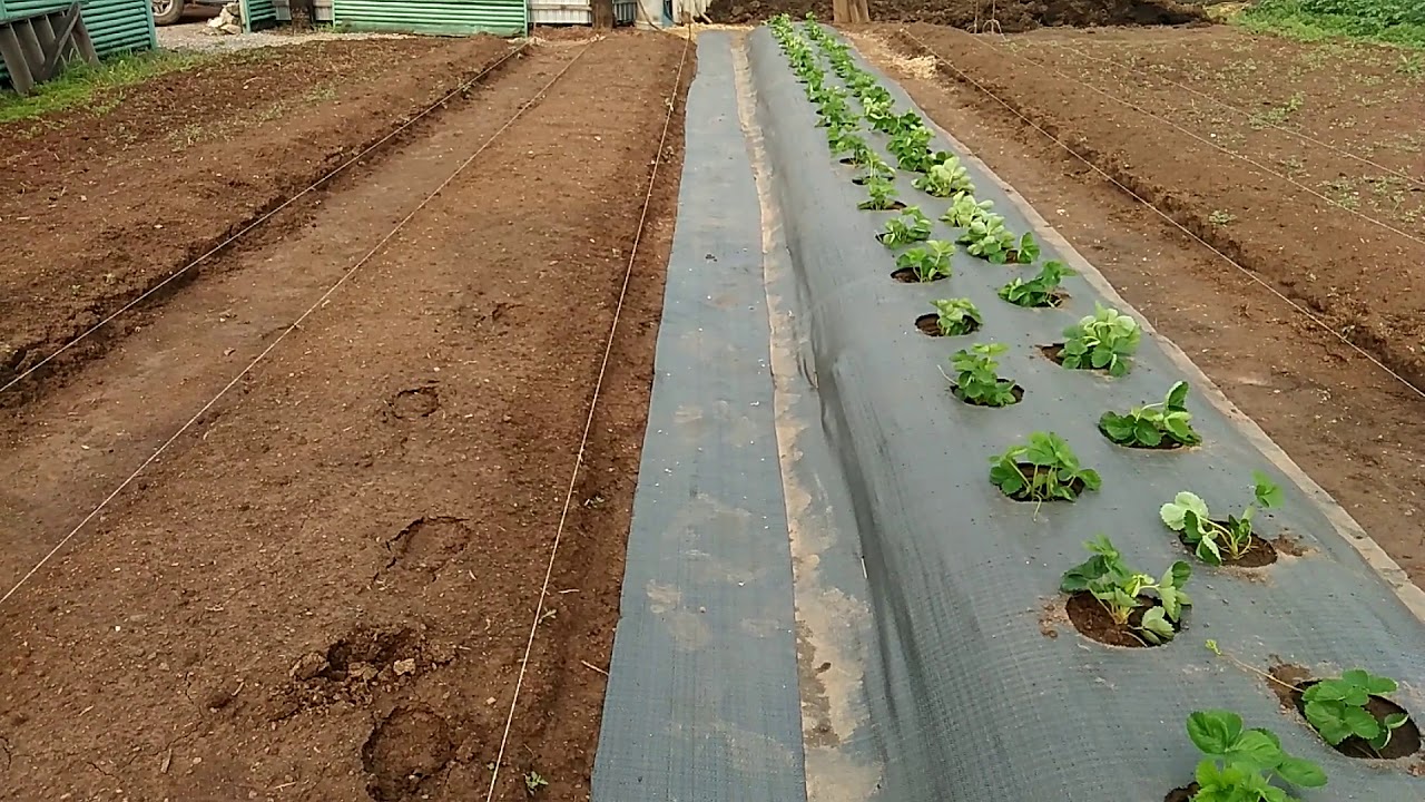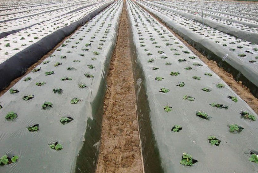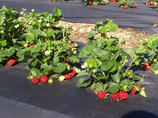 Посадка клубники под чёрный укрывной материал имеет ряд плюсов: