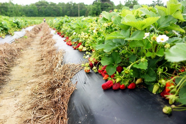 - Корни клубники растут под плёнкой лучше, насыщая ягоды всеми полезными микроэлементами.