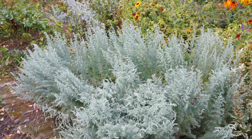 Цветки полыни западной незначительны. Их используют как украшения из-за их сверкающих серебряных листьев.