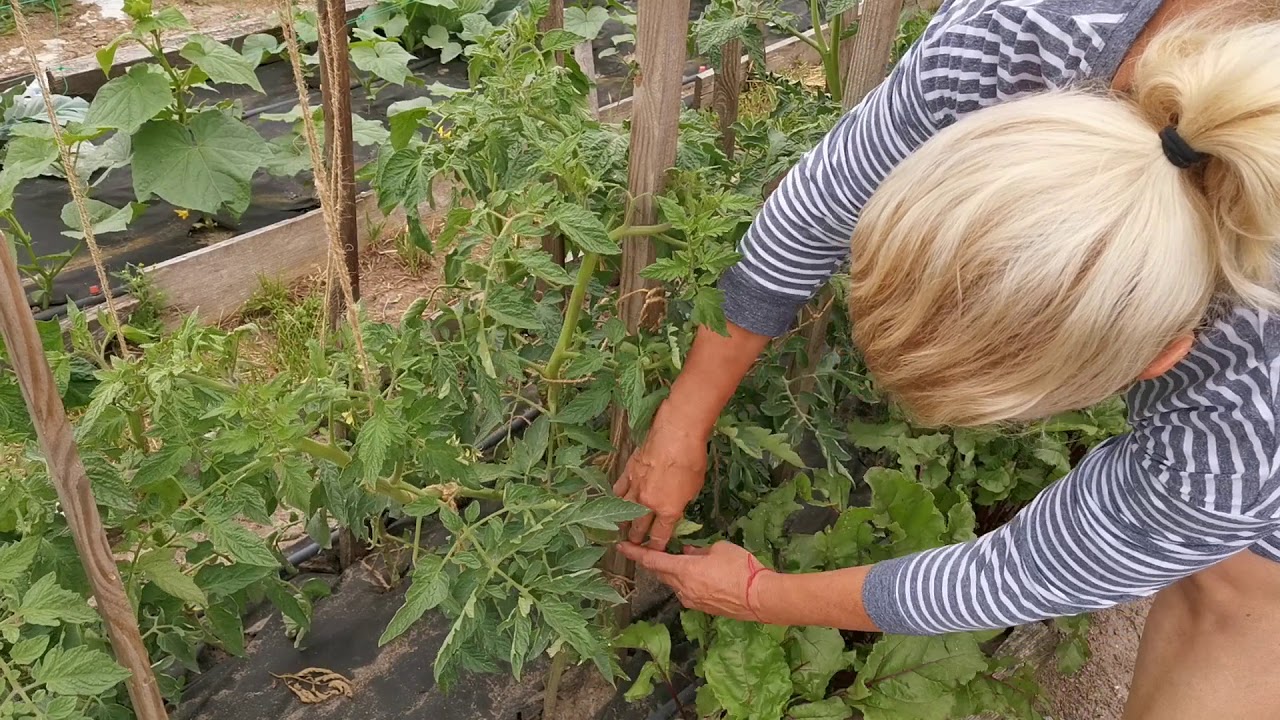Наилучший подход — мульчирование под томатами. Оставьте нижние листья на растении. Если у вас есть склонность к болезням, вы можете удалить лист или два после того, как завяжется первый плод. Если у вас нет проблем с болезнями, оставьте листья на некоторое время дольше.