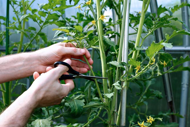 Примечание. При обрезке всех томатов не срезайте их ножом или другими инструментами. Выломать их пальцами очень легко, а рана, вызванная разрывом, быстро заживает. Порез, скорее всего, позволит болезни войти.