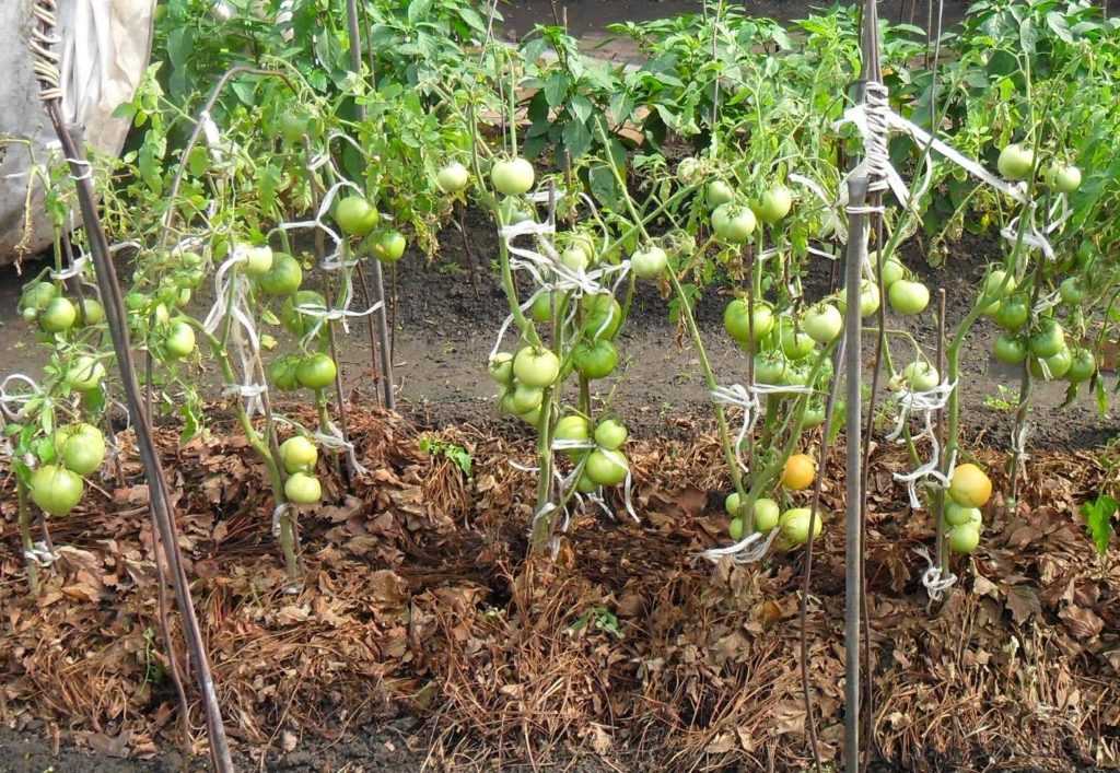 После этого помидоры нужно замульчировать. В качестве мульчи используется сено или солома. Данные материалы будут позволять дольше сохранять необходимую для томатов влагу. Поскольку сено имеет свойство гнить, как и любое другое растение, то это будет служить дополнительной подкормкой для томатов.