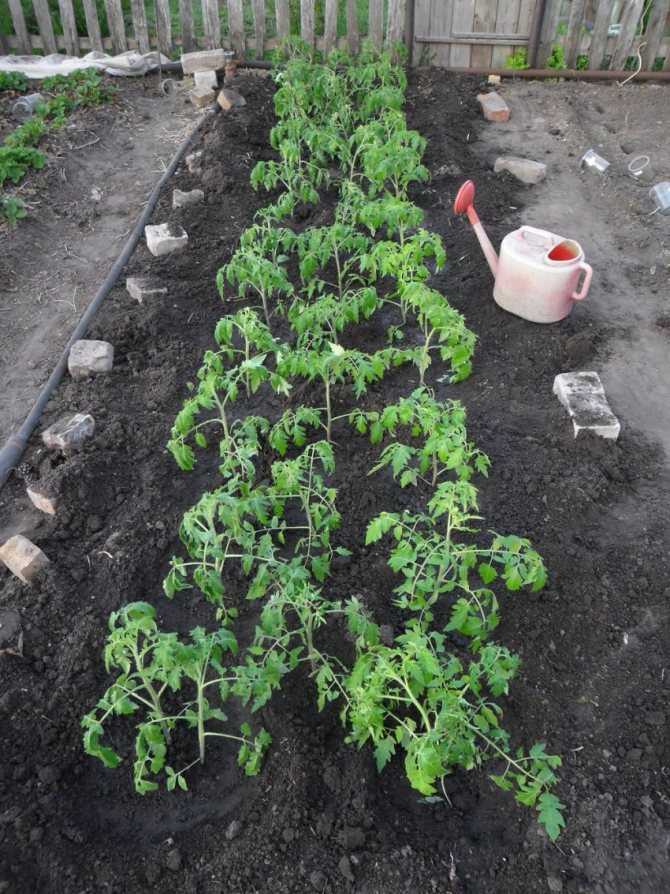 При посадке соблюдают интервал 60-70 см (между рядами) и 30-40 см (между растениями). Плотность посадки помидоров составляет: