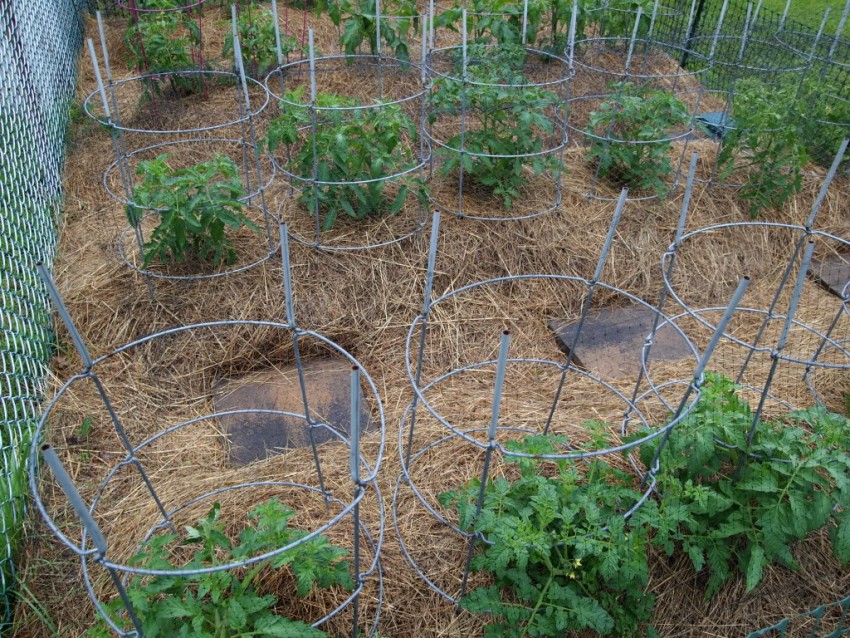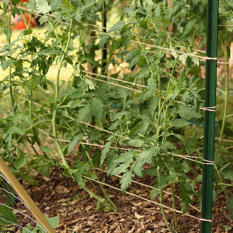Две другие вещи, которые следует учитывать, — это мульчирование и поддержка. Даже компактные сорта томатов нуждаются в некоторой поддержке. Клетки для помидоров, колышки или самодельные клетки, сделанные по размеру контейнера, — все это хорошие варианты. Мульчирование, хотя и менее важное в контейнере, чем на грядке, все же хорошая идея — оно предотвращает рост сорняков в горшке с помидорами и сохраняет влагу, поэтому вам не придется поливать так часто. Лучшими мульчами являются галька, мульча из коры и солома. Если вы предпочитаете использовать пластик, поместите его над почвой перед тем, как посадить помидор, вырежьте достаточно большую щель, чтобы поместить туда растение, и закрепите пластик металлическими кольями.