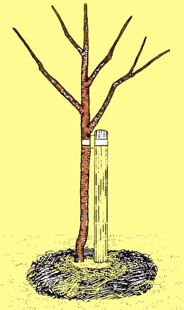 Саженец необходимо подвязать к опоре