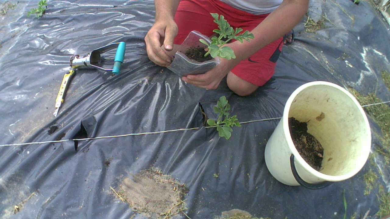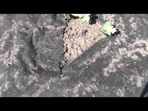 Если пересаживаю растения в жару, применяю несложный агротехнический прием: затеняю их лопухом на 1-2 дня, ежедневно поливаю, пока не приживутся. Затем поливы сокращаю до двух в неделю, в дальнейшем до одного. По мере роста плети расползаются по пленке, корни уходят глубоко в почву и растения меньше нуждаются в поливе. Каждую лунку дополнительно мульчирую опилками или речным песком, чтобы при дожде, поливе или подкормке не размывались корни.