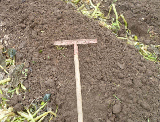 Теперь я сажаю зубки только на насыпные грядки, окантованные досками.