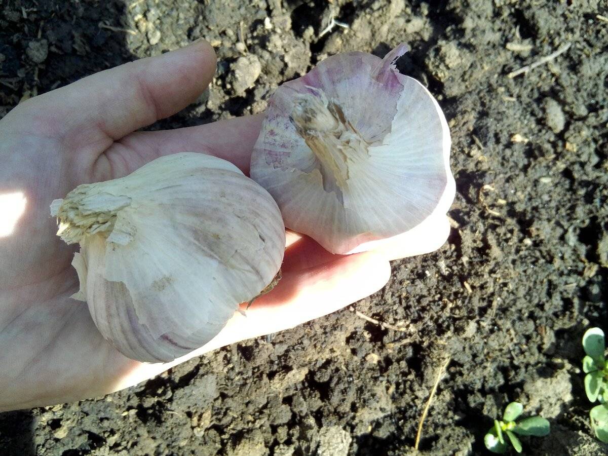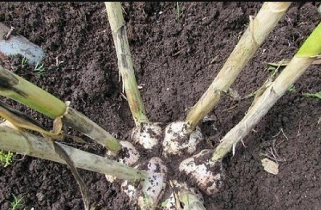 Бывает, что мы оставляем в земле целые головки, на следующий год их можно выкопать, разобрать на зубки и посадить снова