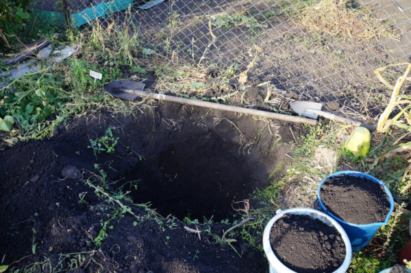 Посадочные ямы роют большими: 40–60 см в глубину и 60–90 см в диаметре. Чем больше места с комфортной почвой будет предоставлено корням, тем лучше будут расти и плодоносить кусты голубики.