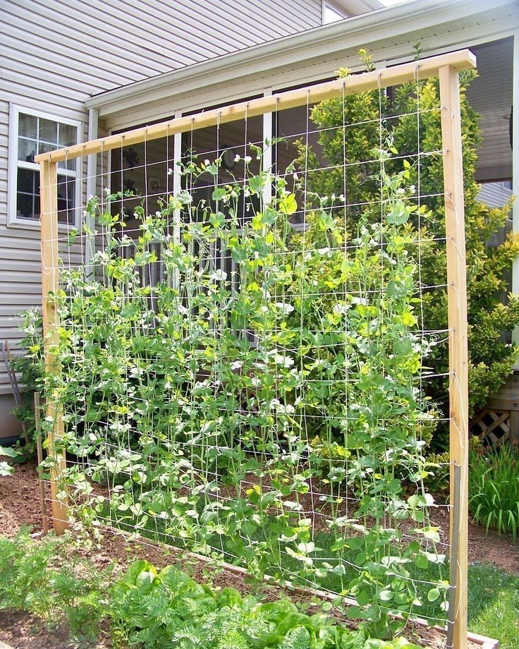 Горох — вьющееся растение, поэтому важно обеспечивать ему поддержку во время роста. «Шпалера поднимет растения гороха над землей, подальше от почвенного грибка и легкой досягаемости слизней», — говорит Каванья.