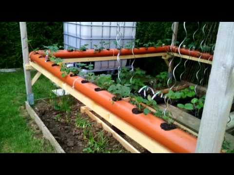 - Растения земляники. Мы посадили их через каждые 9,5 дюймов по всей длине нашей трубы из ПВХ.
