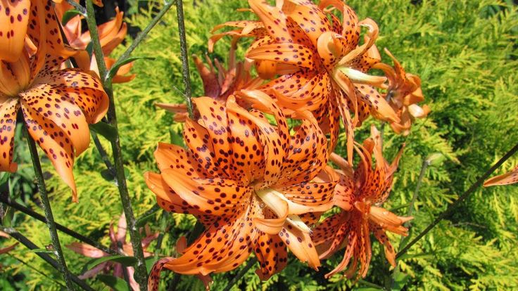 - Лилия тигровая ‘Flore Pleno’ : время цветения: июль – август; высота роста более 1 м.