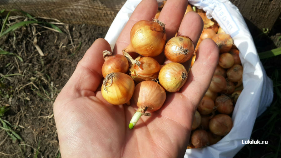 Сажать озимый лук осенью нужно сухим, поэтому его не замачивают и ничем не обрабатывают. Посадочный материал нужно только перебрать, отбраковав поврежденные, подсохшие и подгнившие луковки.