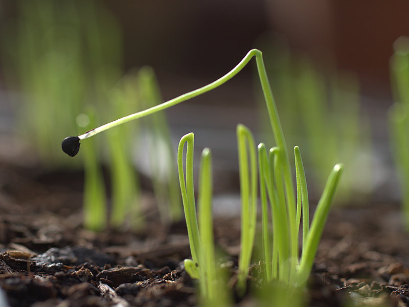Семена лука всходят медленно, а молодые листочки растут очень и очень долго.