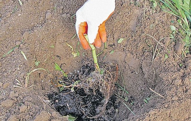 Расправьте корни в стороны. Обрежьте стебель до 5 дюймов и полейте сразу после пересадки.