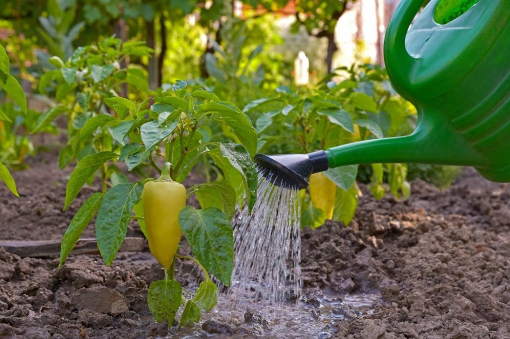 Лучше поливать утром, пока не стало достаточно жарко, чтобы произошло быстрое испарение. Это также гарантирует, что ваши перцы не останутся в сырой почве на ночь.