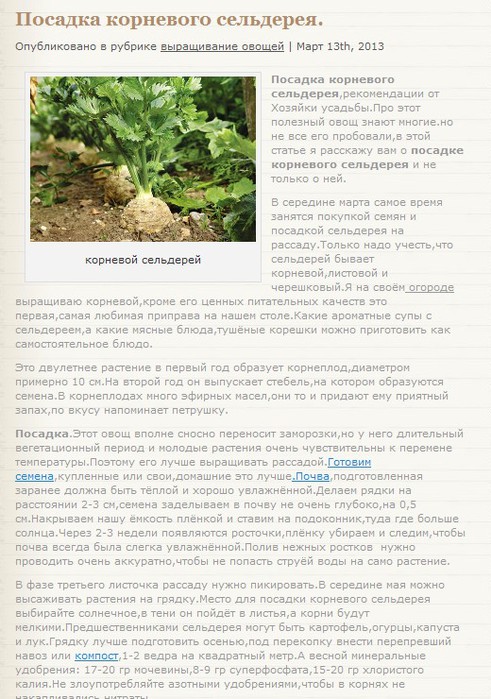 Когда и где следует выращивать сельдерей
