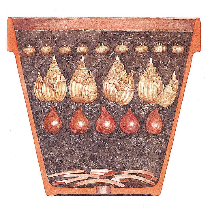 Даже если у вас нет сада, вы можете наслаждаться цветом и ароматом весенних луковиц. Вы можете использовать горшок любого стиля, сделанный из любого материала по вашему выбору, т.е. терракота, пластик, дерево и т. д.Здесь, в Миннесоте, убедитесь, что размер вашего горшка не менее 10 дюймов в глубину и 17 дюймов в ширину. Также убедитесь, что в емкости есть сливные отверстия. В Миннесоте ваш горшок должен жить в изолированном гараже, завернутый в мешковину или пену, а зимой вам придется поливать. Глубина посадки такая же, как и при посадке луковиц в землю.