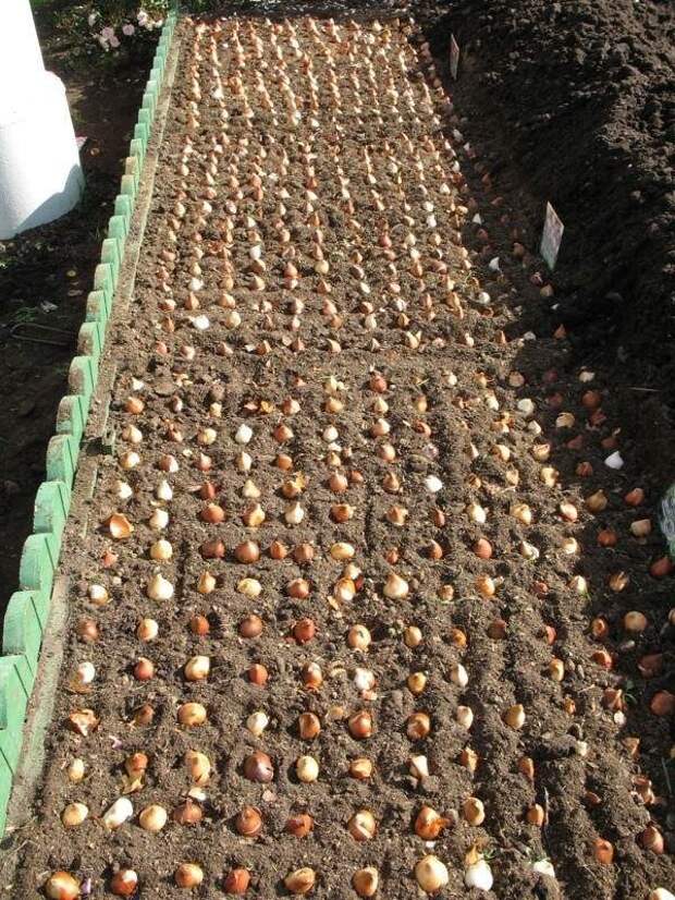 Продолжайте высаживать луковицы до тех пор, пока не будут посажены луковицы самого маленького размера и самой малой глубины.