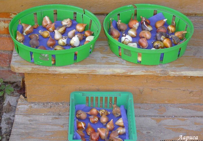 Я так не делала, но думаю, что за вынутыми тюльпанами в стаканах все равно надо следить. Они могут пересохнуть. А одна читательница написала, что вынула так, но у нее были посажены в ящиках. Ящики поставила поверх земли для дозревания луковиц. Напали слизни, не доглядела, много луковиц потеряла.