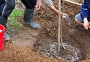 Для этого шага полезно иметь двух человек. Удерживайте дерево на уровне почвы, расправляя корни, как зонтик. Убедитесь, что ствол дерева прямой. Другой человек засыпает яму землей, строя прочный фундамент под короной.Закройте все корни и убедитесь, что соединение прививки находится выше уровня почвы. Слегка утрамбуйте почву ногой, чтобы удалить воздушные карманы.