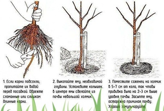 Очень важно правильно выбрать место произрастания яблони. Для этого предпочтительней открытые солнечные участки на небольшой возвышенности. Дерево не любит заболоченных мест, сквозняков и не будет расти в тени других деревьев или построек. Уровень залегания грунтовых вод должен быть не менее двух метров, а реакция почвы — нейтральной. Посадочную яму желательно заготовить заранее, примерно за месяц до высадки. Для этого готовиться смесь из верхнего слоя плодородной земли, древесной золы и минеральных комплексов. Можно использовать коровий или куриный помет, а также азотные удобрения, но в разумных пределах.