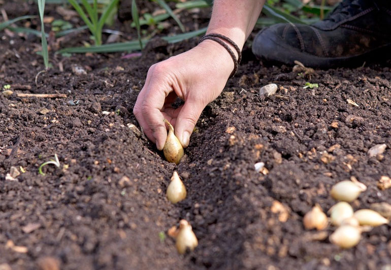 Традиционный метод подразумевает углубление посадочного материала на глубину от 3 до 5 см и производится за 2 — 3 недели до начала устойчивых холодов. Для средней полосы это конец сентября, для юга и запада — начало ноября.