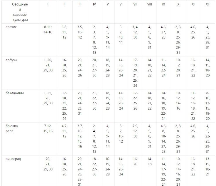 Наилучшее время для посадки овощей, которые дают урожай в надземной части, и зеленных культур – когда растущая Луна проходит по плодовитым и очень плодовитым знакам Зодиака. Когда по этим знакам проходит убывающая Луна, сажают и сеют корнеплоды. В полнолуние, новолуние, за день до и на следующий день после новолуния нельзя ничего сажать и сеять.