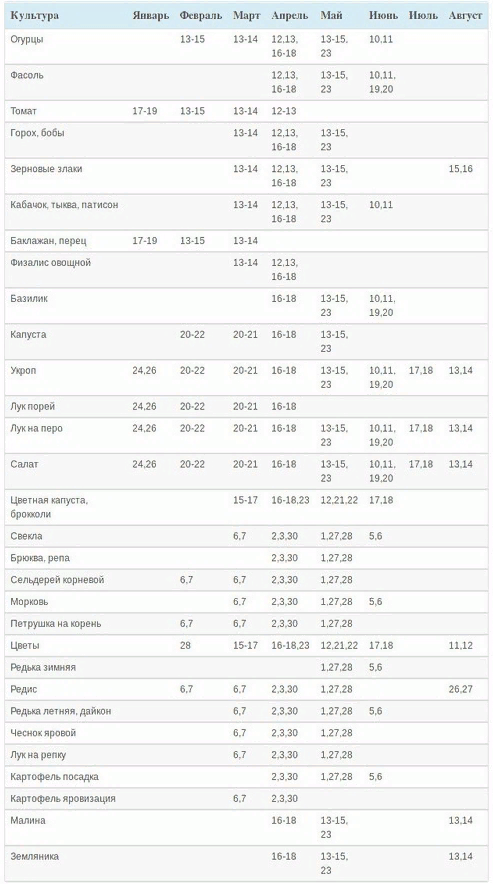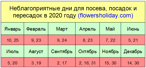 д., а только указываем лучшие дни для посадки, опираясь на положение луны на небосклоне. Таблица благоприятных посадочных дней не панацея, а лишь рекомендация Лунного календаря, согласно фазам луны.