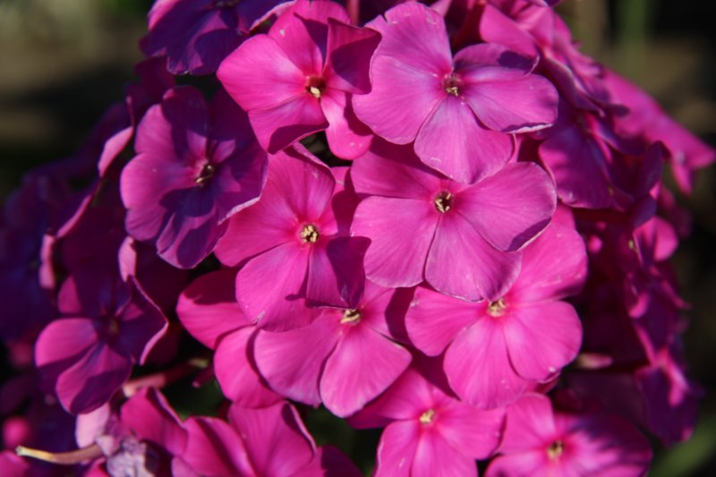 Первое, на что обращают внимание при определении сорта или оценке декоративных качеств, — это окраска, размер и форма венчика цветка. Окраска цветков флоксов очень разнообразна. Часто бывает очень сложно описать основной тон венчика и его оттенки. Поэтому все разнообразие окрасок грубо поделим на несколько групп. Сорта с чисто-белой, розовой, лососево-оранжевой, малиново-красной, малиновой, пурпурной, сиренево-лиловой, лилово-голубой, фиолетовой и дымчатой окраской. На самом деле пигменты, окрашивающие цветки флоксов, очень сложны и в природе находятся под воздействием таких факторов, как состав почвы, интенсивность освещения.