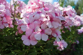Флокс «Жуковский»Он цветет «голубым облаком» буквально, запах у него очень своеобразный — это очень ранний флокс. В основном считаются самыми ранними такие сорта как «Мишенька» вот он обычно тоже во многих садах начинает сезон цветения флоксов. У нас цветут рано ещё такие сорта, как «Седая дама», «Чио-чио-сан». Дальше уже начинается с июля массовые цветение, то есть в основном у флоксов средний срок цветения и вот то пышные буйство красок мы получаем с середины июля и до конца июля. Вот это самый пик — две недели. В августе цветут уже поздние сорта, может продолжаться и в сентябре.