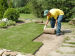 Все отрезки рулонов, лежащие рядом, необходимо укладывать вплотную друг к другу, но без нахлеста и зазоров. Человек, который будет укладывать руками рулонный газон, должен перемещаться по предварительно подготовленному настилу из деревянных досок. Это предохранит газон от деформаций и будет способствовать его лучшему уплотнению. Рулонный газон после укладки не должен подвергаться каким-либо механическим воздействиям, поэтому следует ограничить передвижение по нему в течение нескольких недель. - По необходимости удалите края газона для придания им формы, которая будет соответствовать границе участка.