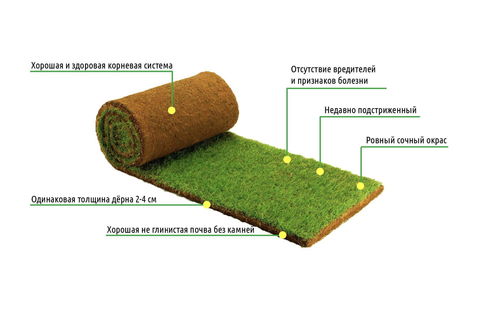 - Сила корневой системы – трава не должна отходить от пласта, повреждаться при срезании и скатывании в рулон.