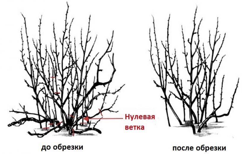 После обрезки усиливается ветвление и рост однолетних побегов, растущих на многолетних ветвях, проводится профилактика загущения куста, как результат — увеличиваются размеры ягод.