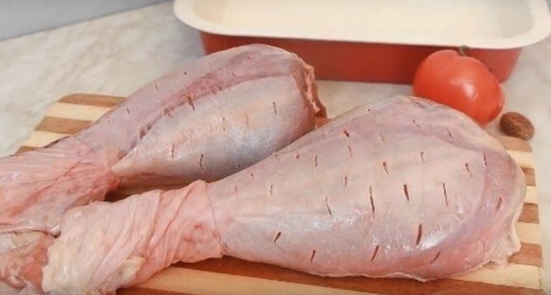 - Промокните бедра индейки и голени насухо бумажным полотенцем.
