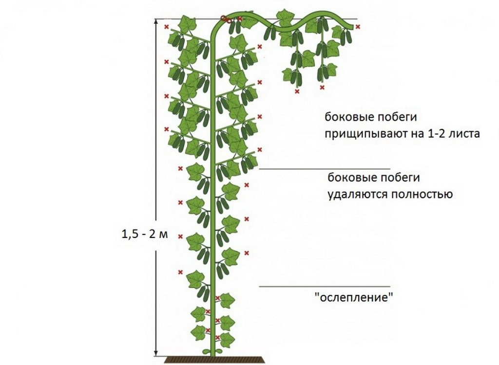 ✎ Обратите внимание! Придерживайтесь схемы прищипки огурцов, которую производитель печатает на пакетике с семенами.
