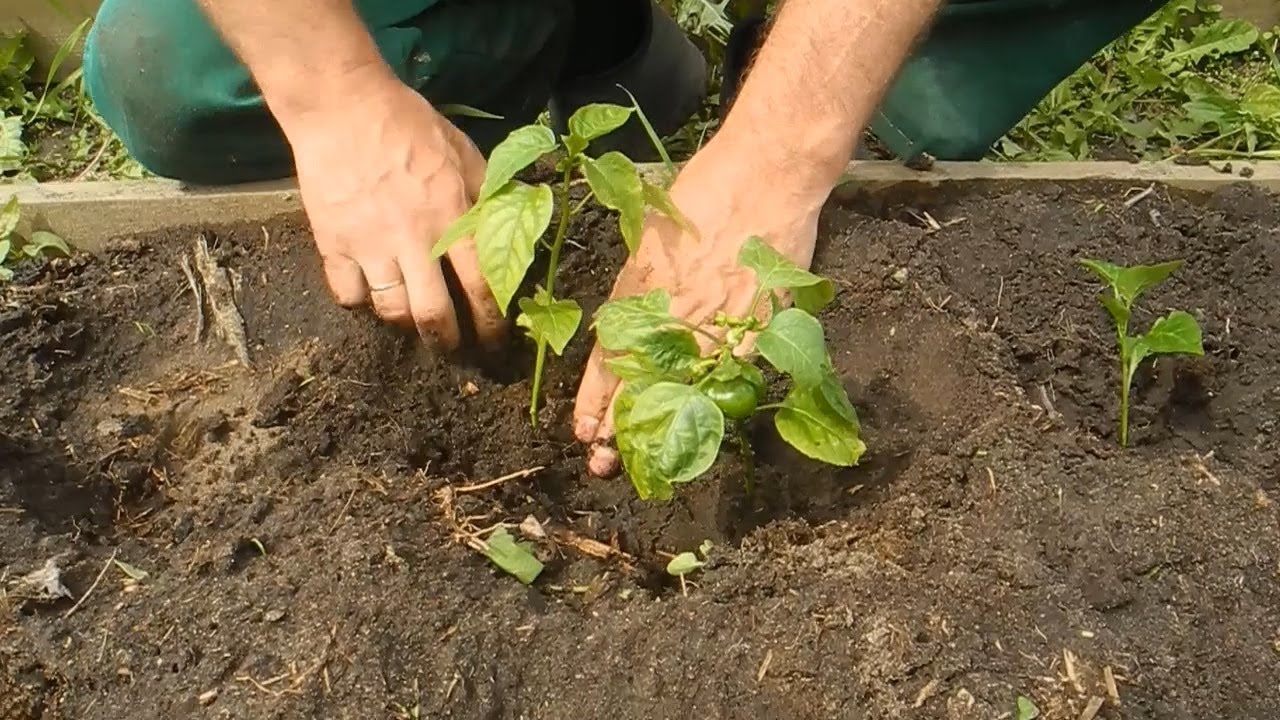 -Посадите рассаду перца в ямку на той же высоте, что и раньше в горшке.