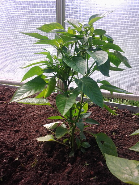 При перенесении в теплицу перец высаживают так, чтобы оставалась возможность увеличить объем куста на 2-3 ветки.