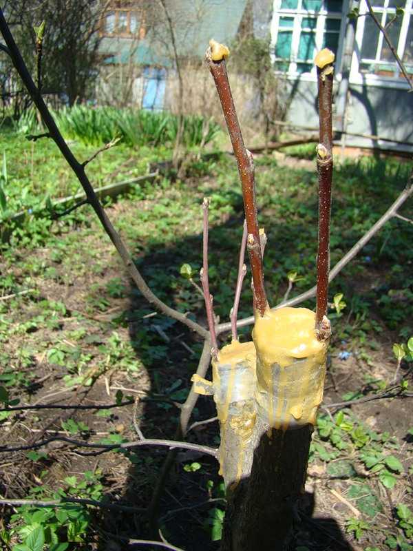 Для этого существуют составы на основе натуральных компонентов (ланолин, пчелиный воск, хвойная смола).Рекомендуется применять садовый вар на основе природных компонентов - В первый год место прививки следует притенять с целью лучшей приживаемости.