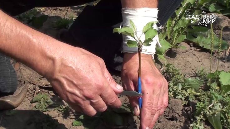 - Выбирают место прививки на подвое — оно должно находиться на расстоянии 10—15 сантиметров от корневой шейки молодого растения (или на расстоянии 5—10 сантиметров от основания ветки при поведении прививки в крону дерева). В регионах с большим количеством снега для обеспечения лучшей зимостойкости груши место прививки выбирают на высоте не менее одного метра.