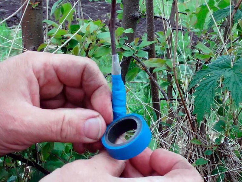 - Обматывают место прививки лентой. Можно использовать изоленту липким слоем наружу или фум-ленту.