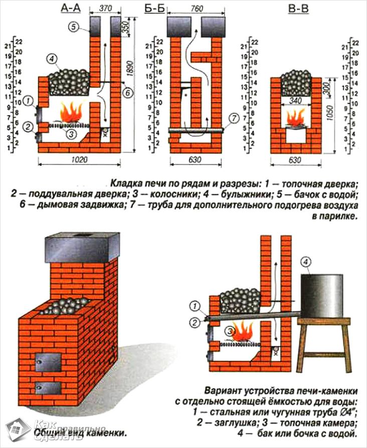 - Кирпичные печи для бани своими руками: проекты и их особенности